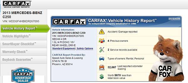 然後,又發現一個好康:Free CarFax Report!