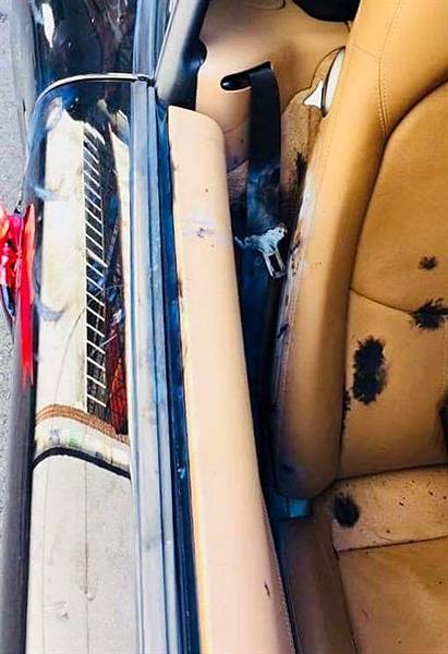 我猜這一台應該是PORSCHE 911 ,這車台灣總代理賣的價格不斐,從上傳的照片中,可以看到黑色保時捷放鞭炮時,疑似沒丟準,直接往自己車上炸去,車子裡外都留下被鞭炮炸過的痕跡!